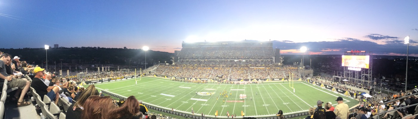 The beautiful Tim Hortons field, located in the heart of downtown Hamilton, provided a stunning skyline view on the South side coupled with a perfect sunset to the North. The open stadium was flooded with black and golds dressed fans and the food and drinks did not disappoint. This family-friendly event was fun for all ages-from 6-month-old infants to 90-year-old grandparents, the 2017 Home Opener was an atmosphere to experience.