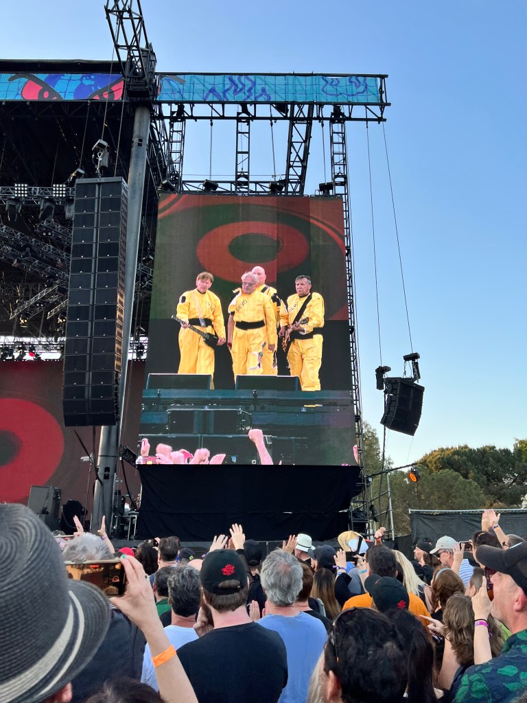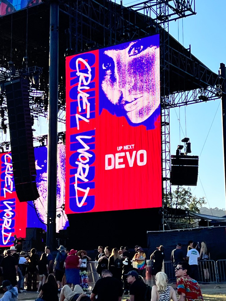 We missed the Violent Femmes set and waited instead to see DEVO – one of my all time favorite live acts. I moved close to the stage for their set. They sounded exceptional and brought along all of their clever sarcasm. They even had mid-set costume changes – all as the sun was setting. Good times.