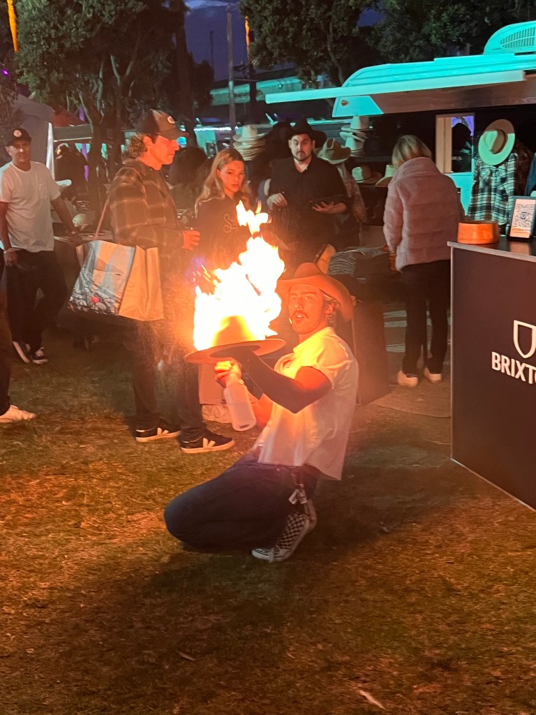 ACCOUTREMENTS – There were lockers to leave your stuff. Restrooms were abdundant. My wife was pleased with the plentiful variety of adult beverage options. In addition to multiple bars, there were several alcohol sponsors – beer, wine, tequila, hard seltzers. Local restaurants were on hand to serve up their specialties – from burgers and pizza to tacos and sliders. There was a bottomless free supply of flavored sparkling water from a sponsor and King’s Hawaiian Bread was handing out free Maui chicken sliders. This was also the place to buy your new cowboy hat.
